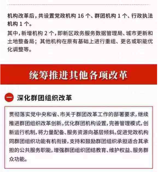機(jī)構(gòu)改革后,大鵬新區(qū)共設(shè)置黨政機(jī)構(gòu)16個(gè)、群團(tuán)機(jī)構(gòu)1個(gè)、