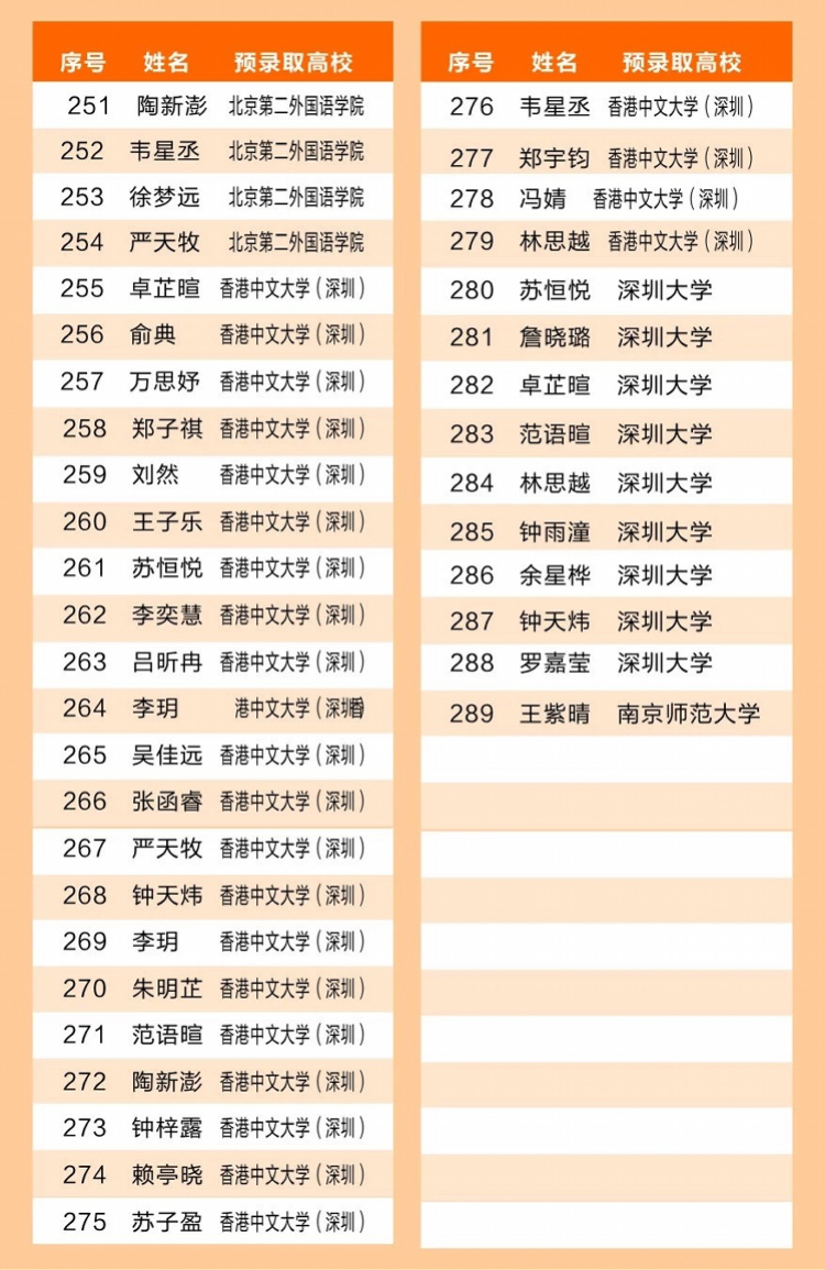深圳晚報2019年02月17日訊 2月16日,記者從深圳外國語學(xué)校獲悉,該校2019年保送創(chuàng)紀錄。截至目前,該校外語書院126人收獲289份預(yù)錄取通知,其中北京大學(xué)、清華大學(xué)保送9人;北京外國語大學(xué)、上海外國語大學(xué)保送74人;香港中文大學(xué)(深圳)25人、華南理工大學(xué)31人……