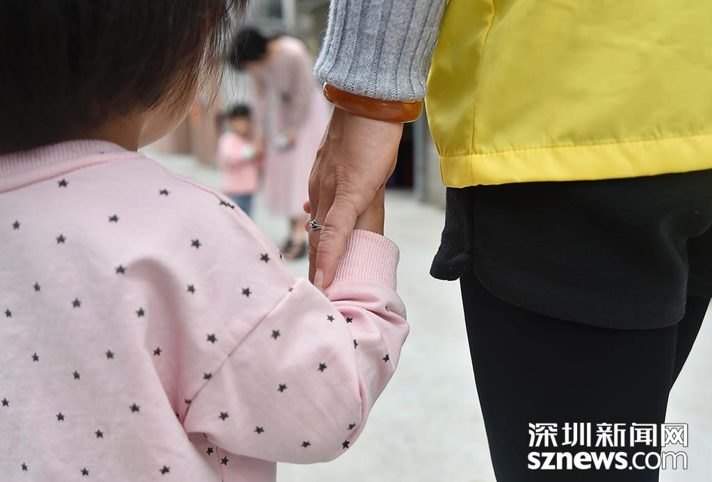陳永美牽著小女兒的手,這兩個(gè)小孩是支撐她在外工作的最大動(dòng)力