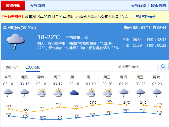 深圳新聞網(wǎng)2019年3月14日訊“露臉”沒幾天的太陽又要去“流浪”了。據(jù)深圳市氣象臺(tái)消息,受弱冷空氣影響,今日深圳陰天為主,有分散陣雨;氣溫19-21℃;。早晨天氣較涼,注意添衣保暖。