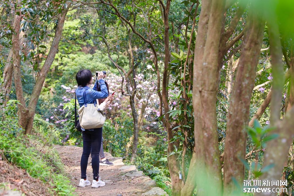 梧桐山成踏春賞花打卡點(diǎn),市民用相機(jī)記錄下毛棉杜鵑之美。