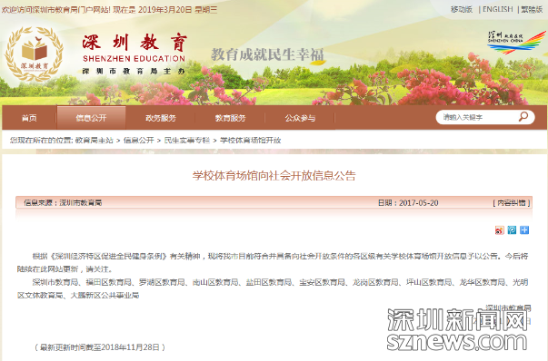 深圳市教育局關(guān)于學(xué)校體育館向社會開放的信息公告