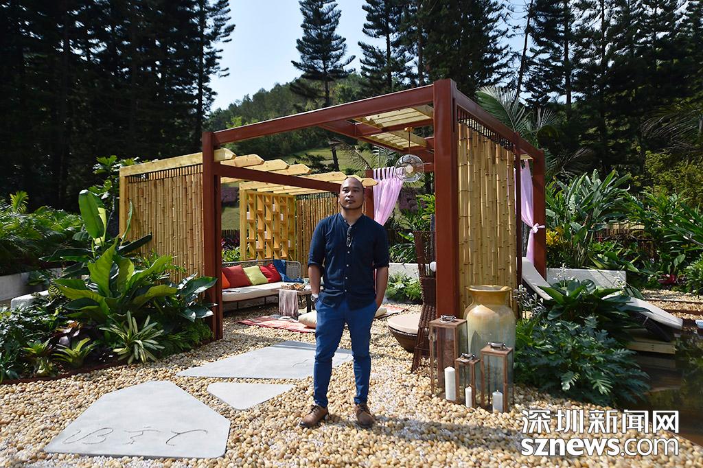 園林設(shè)計(jì)師Christopher Edward Eulloran和其設(shè)計(jì)的海派南洋花園合影