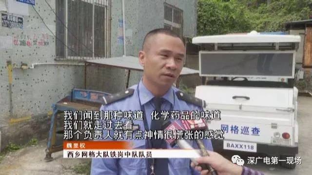 晚上8點(diǎn)30分,寶安西鄉(xiāng)鐵崗網(wǎng)格巡查中隊(duì)網(wǎng)格員在轄區(qū)一工業(yè)園夜巡時(shí)發(fā)現(xiàn)一輛貨車正在一倉庫門口卸貨。網(wǎng)格員發(fā)現(xiàn),工人們將一個(gè)個(gè)大鐵桶和塑料桶搬進(jìn)旁邊的一個(gè)倉庫,現(xiàn)場散發(fā)出一股刺鼻的氣味。