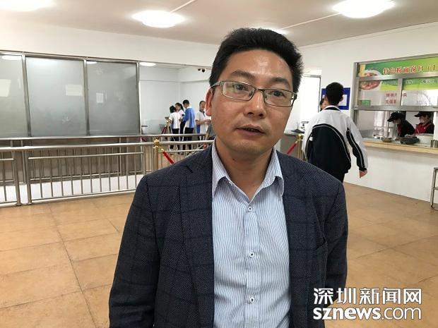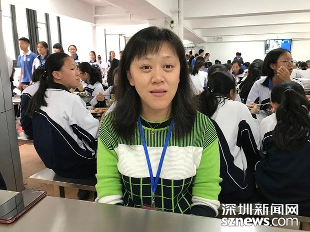 4月1日中午,深圳市福田區(qū)外國語學(xué)校校長丁長義跟學(xué)生一起在食堂就餐