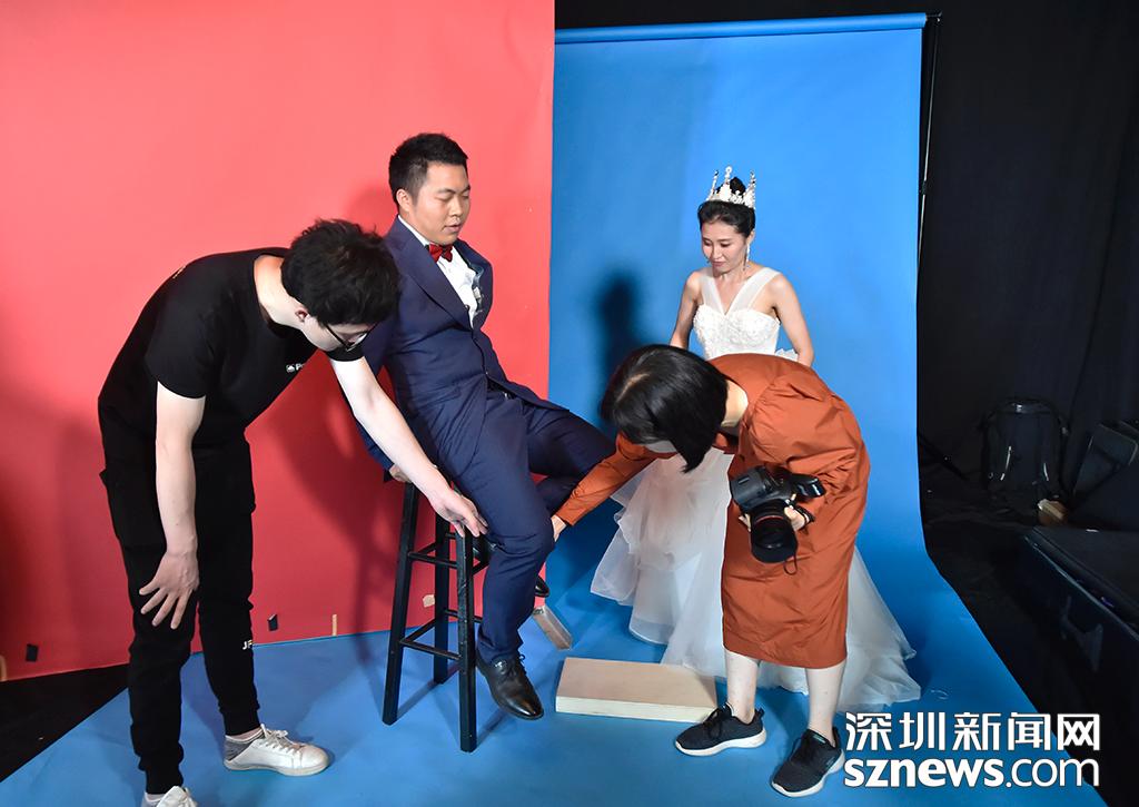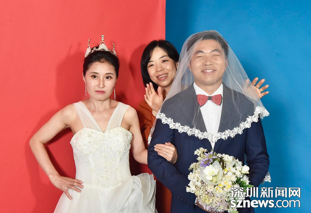 深圳新聞網(wǎng)4月15日訊(記者 劉夢婷 楊浩翰 劉慶康 )“美麗的新娘,現(xiàn)在請你看看你的丈夫”“新郎,此刻你最想對妻子說什么呀?”深圳地鐵13號線人才公園站的項目工地上,臨時搭建的攝影棚里,羅嫻一邊調(diào)節(jié)氣氛,跟新婚不久的邱彬和他的彝族妻子的日布哈莫交流,一邊迅速按下相機快門,記錄下真實又美好的瞬間。