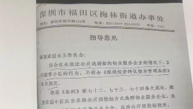 朱先生說,那名業(yè)主在發(fā)出他的舉報信的同時,還發(fā)了一張梅林街道辦的指導(dǎo)意見: