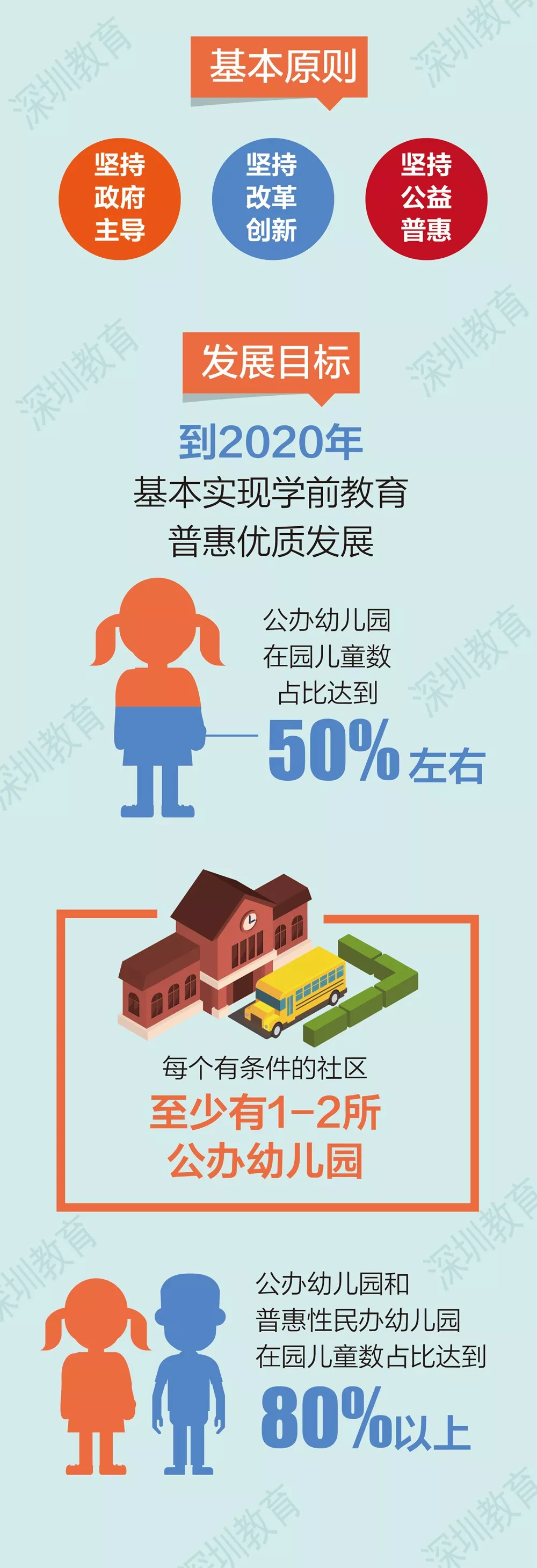 目前深圳共有各類幼兒園1771所,其中,公辦幼兒園共68所,占比僅3.8%。根據(jù)《意見》及《通知》的內(nèi)容,到2020年,全市幼兒園總量預(yù)計達到1967所,其中公辦園和普惠性幼兒園占比達到80%以上,公辦園約984所,在園兒童占比達到50%;普惠性民辦幼兒園約590所,占比30%以上;營利性民辦幼兒園393所,占比20%以內(nèi)。深圳將用3-5年時間,基本實現(xiàn)學(xué)前教育普惠優(yōu)質(zhì)多樣化發(fā)展。