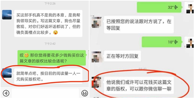 記者問:柔宇提到自媒體作者要求按閱讀量索要版權費,柔宇已報案。請問,憑微信聊天記錄頁面是否形成證據(jù)鏈,法院會采信嗎?