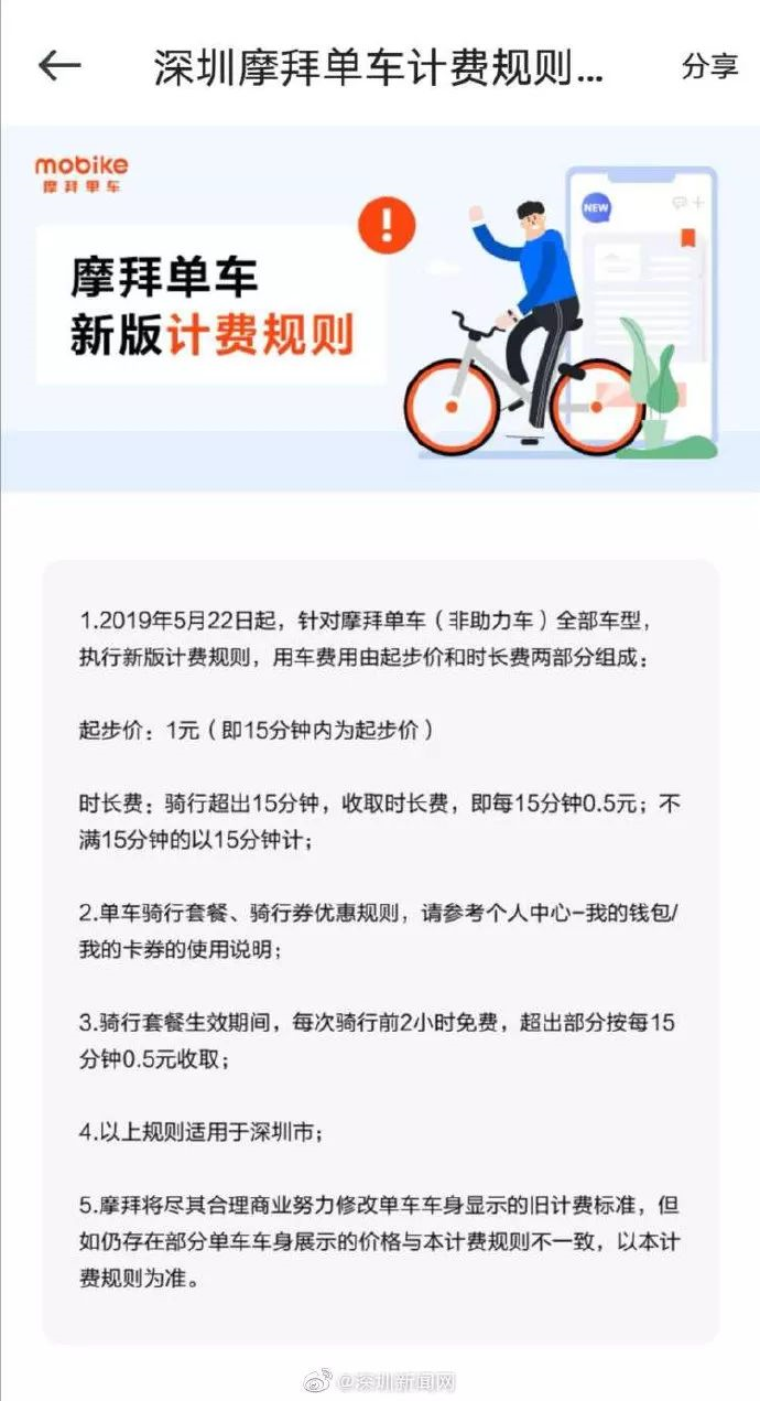 深新早點丨摩拜宣布在深圳漲價!騎行一小時漲至2.5元,你還騎嗎?(語音播報)