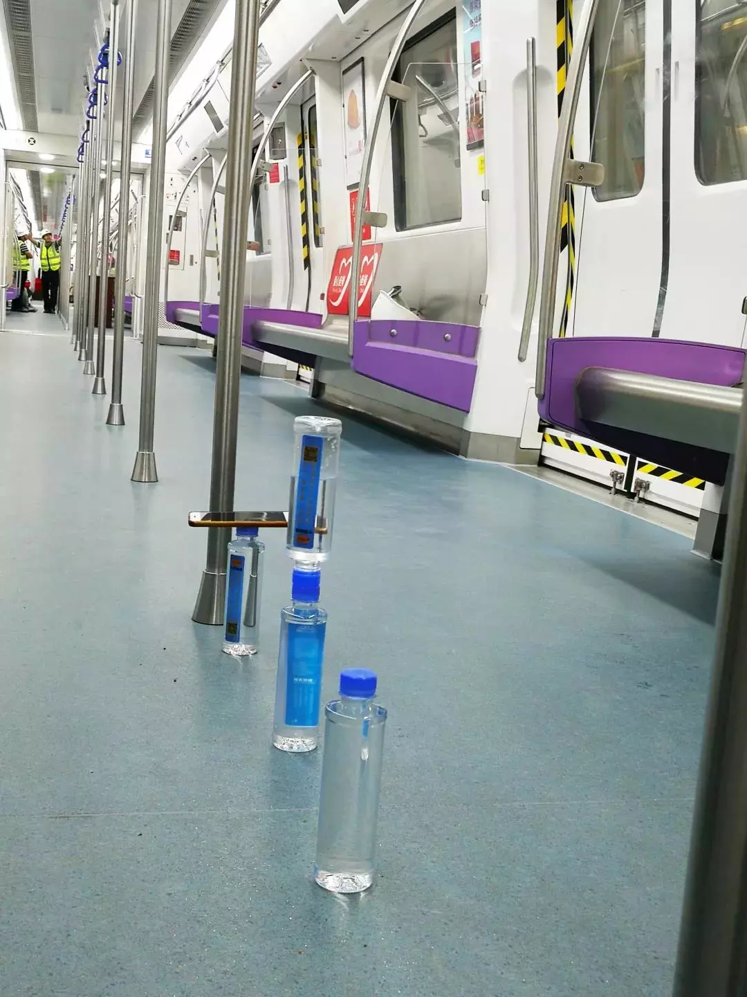 ▲列車運行平穩(wěn),倒立的瓶裝水不倒