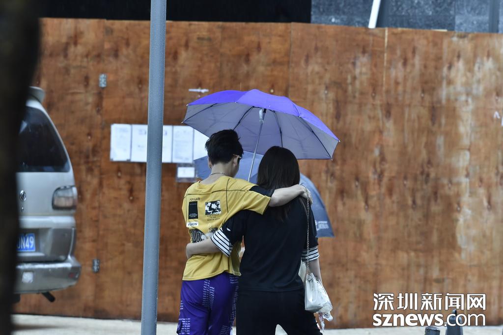 一對(duì)市民在雨中穿行