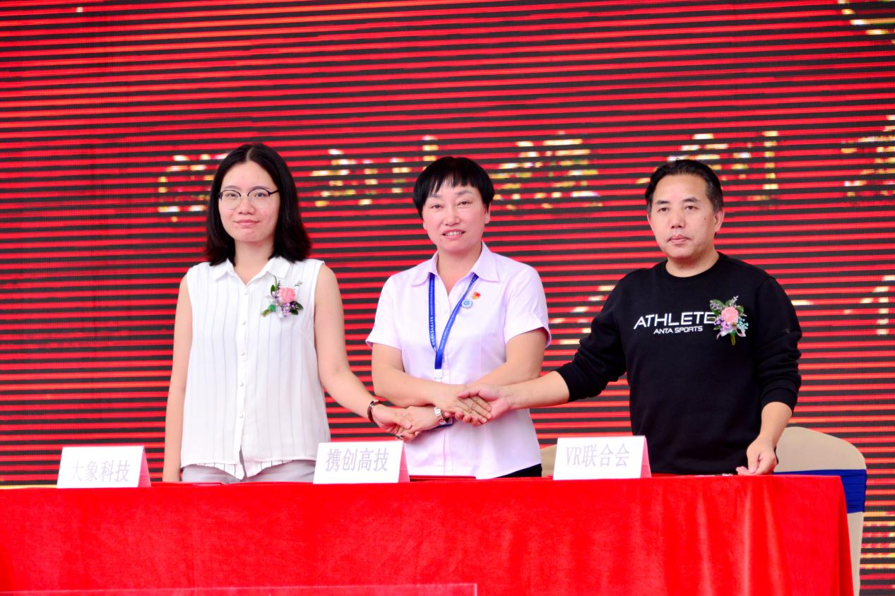 揭牌儀式上學(xué)校分別與深圳市虛擬現(xiàn)實產(chǎn)業(yè)聯(lián)合會、深圳市電子競技運動協(xié)會進行了校企合作簽約。