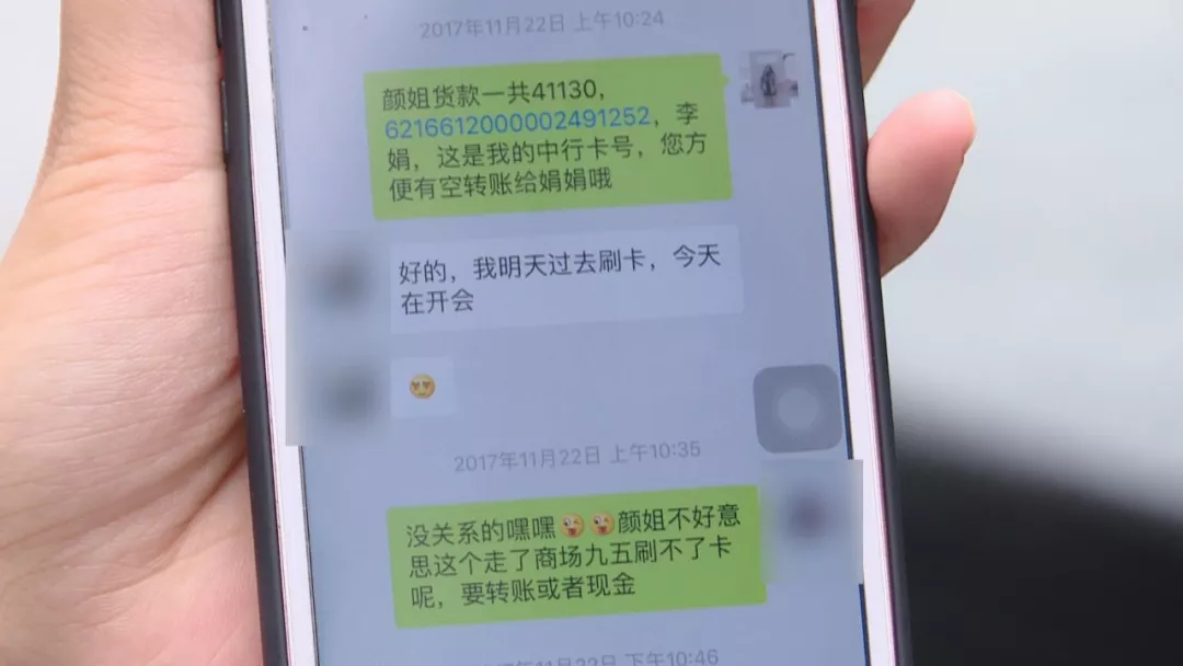 李小姐提供的微信聊天記錄顯示,當(dāng)時李小姐把墊付的總額4萬多元,告知了顏女士,對方回應(yīng):“我明天過去刷卡,今天在開會”。