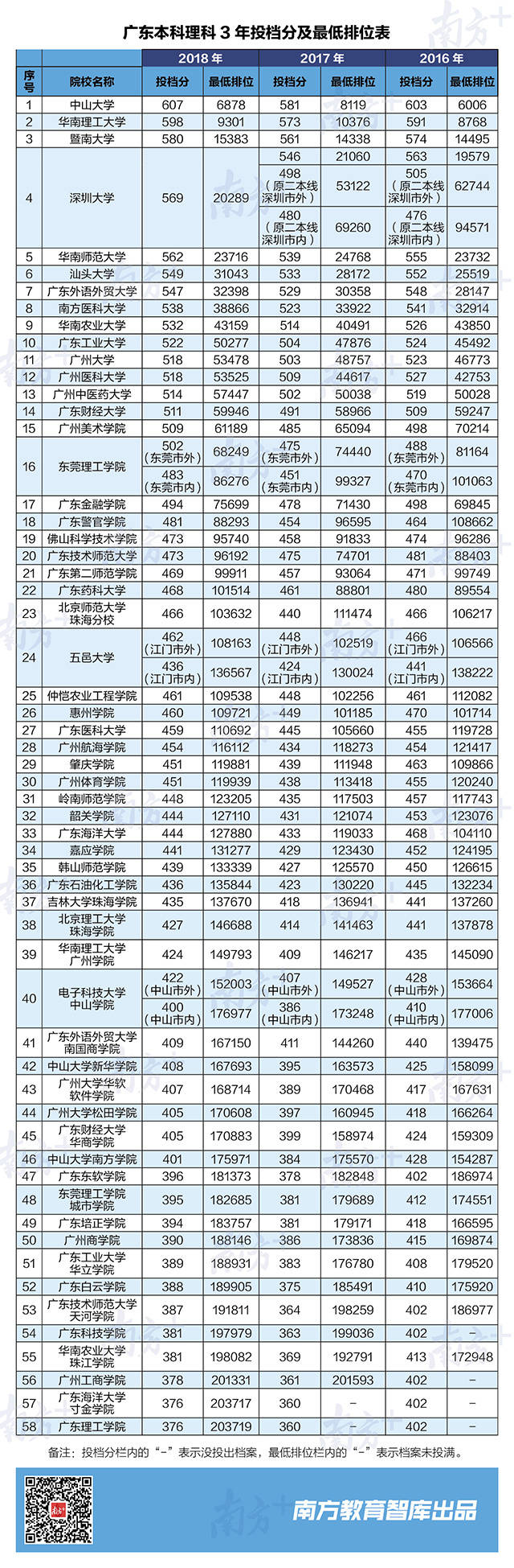 南方教育智庫獨家統(tǒng)計了2016-2018共3年廣東高校錄取分和最低排位,為廣東考生全面分析,排位多少名,能上廣東好大學?