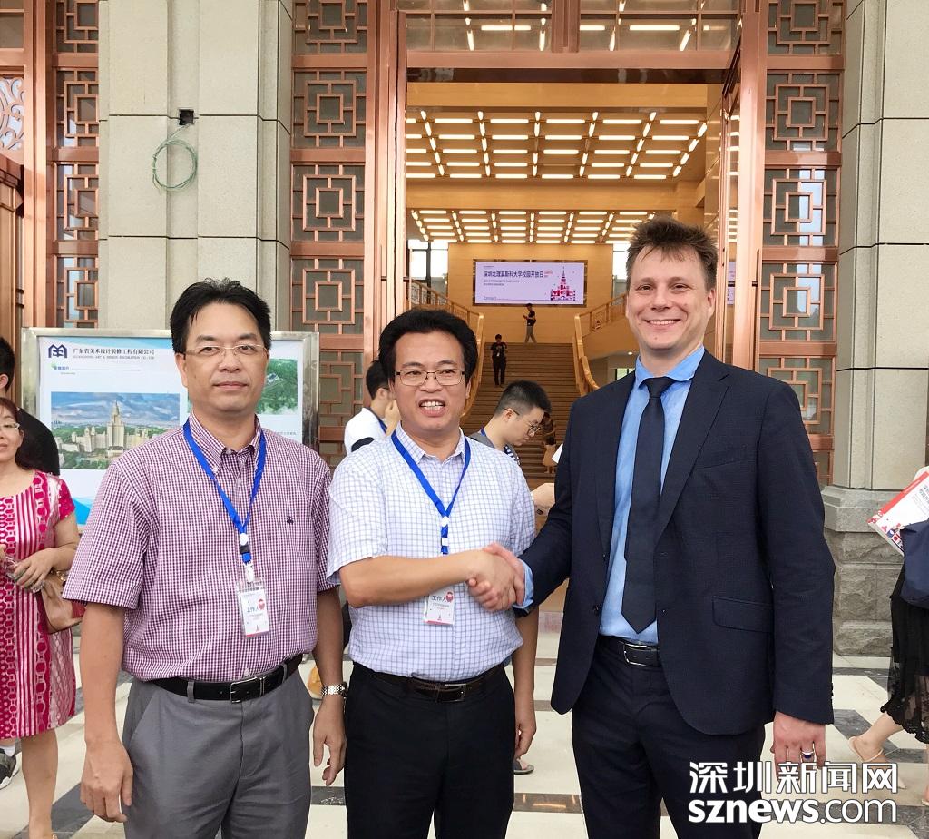 左起:深北莫黨委書記、副校長(zhǎng)陸萬偉,深北莫代理校長(zhǎng)唐水源及副校長(zhǎng)阿列克謝·塔拉索夫合照