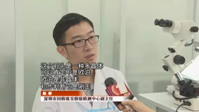 隨后工作人員對(duì)石頭的密度進(jìn)行測(cè)試,并確定不是先前拍賣公司說的“歐泊石”,而是剛玉。
