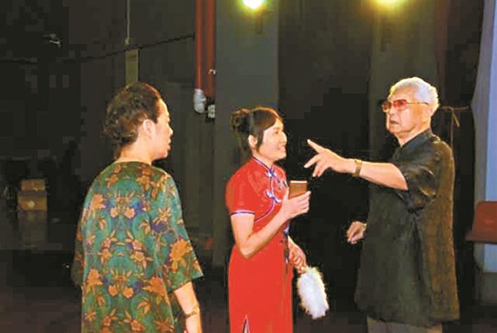 2019年4月,譚嗣英(右一)在2018~2019年深圳中老年藝術(shù)團(tuán)隊(duì)年度優(yōu)秀節(jié)目展演《祖國(guó)頌》系列節(jié)目彩排時(shí)現(xiàn)場(chǎng)指導(dǎo)。