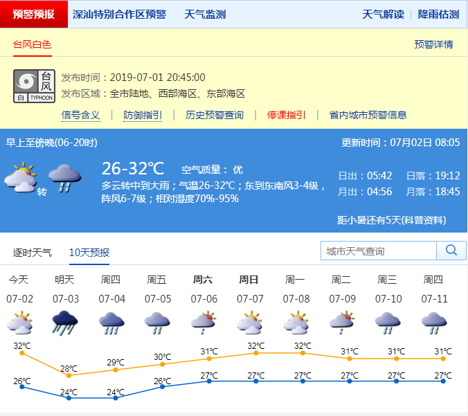 深圳新聞網(wǎng)2019年07月02日訊 深圳市氣象臺已于昨日20時45分發(fā)布臺風(fēng)白色預(yù)警信號,預(yù)計其將可能在48小時內(nèi)影響我市,全市進入臺風(fēng)注意狀態(tài)。氣象臺預(yù)計,今日白天深圳風(fēng)力逐漸加大,最大陣風(fēng)7級左右,午后降雨漸趨頻密,局部大雨,夜間降雨加大,有大雨到暴雨,局部大暴雨,請做好防范準(zhǔn)備!
