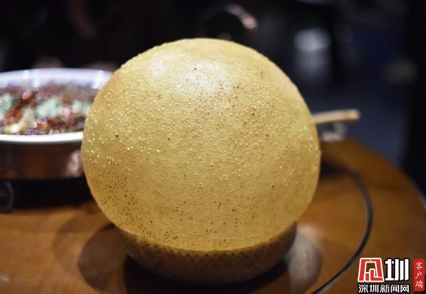 點(diǎn)菜時看到光頭司令大麻圓時,小婕非常好奇,麻圓是有多大?果然,是麻圓plus版,面上沾滿白芝麻,戴上餐廳配備的塑料手套,邊撕邊吃,嚼起來甜糯香口,吃得停不下來!但一定要趁熱吃!熱的時候酥香, 冷吃很膩,也有些塞牙縫。分量較大,兩個人是吃不完的。
