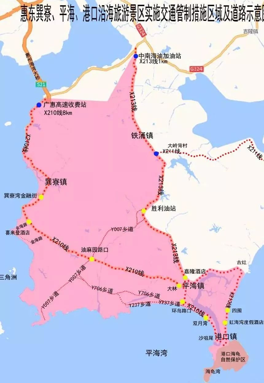 7月1日至8月31日(暑假期間)及中秋和國慶法定節(jié)假日,巽寮、平海、港口沿海景區(qū)全天候?qū)嵭袉坞p號(hào)進(jìn)入限行,違規(guī)罰200扣3分
