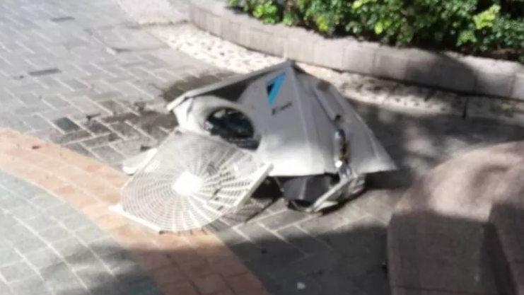 據(jù)說是工人在安裝空調(diào)時(shí)不小心脫手導(dǎo)致的。