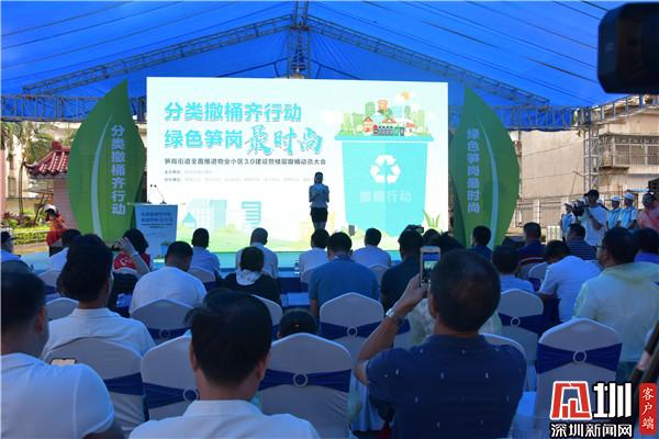 深圳新聞網(wǎng)訊(記者 劉嘉敏 實習(xí)生 覃鈺清 通訊員周伸寧)2019年7月31日,由筍崗街道辦事處主辦、各社區(qū)工作站協(xié)辦的“分類撤桶齊行動,綠色筍崗最時尚”筍崗街道全面推進物業(yè)小區(qū)3.0建設(shè)暨樓層撤桶動員大會在郵電大院順利舉行。筍崗街道辦領(lǐng)導(dǎo)、小區(qū)物業(yè)代表、社區(qū)工作站代表及居民共200余人參加了此次活動。