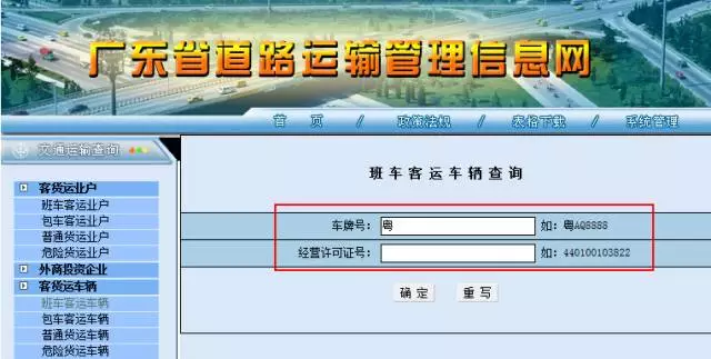 登錄廣東省道路運(yùn)輸管理信息網(wǎng),點(diǎn)擊左側(cè)菜單欄中的「客貨運(yùn)車輛」,再點(diǎn)擊「客班車客運(yùn)車輛」,就能進(jìn)入到查詢頁面。