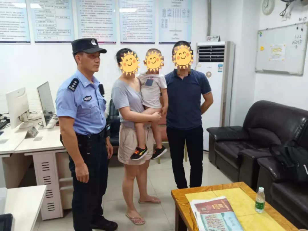 7月24日,某廣場舉行了一場反詐騙宣傳活動,活動結束后沙頭派出所民警余愉發(fā)現(xiàn)一名走失的小男孩在哭泣,因其說不出家人信息,附近找尋后也未發(fā)現(xiàn)其父母,余愉便將其帶回警務室,并告知巡邏治保隊員多加留意。19時許,巡邏隊員找到小孩父母,并將他們帶到警務室,核實身份后兩人將小孩帶回。