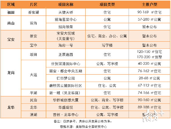 深圳市8月份入市項(xiàng)目預(yù)測列表