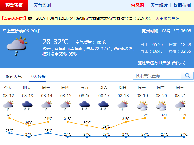見圳客戶端·深圳新聞網(wǎng)2019年8月12日訊 最近深圳高溫天氣持續(xù),有市民調(diào)侃"仿佛站在空調(diào)外機(jī)旁"。不過(guò),本周起,深圳雷雨天氣增多,局部可達(dá)暴雨,炎熱天氣將有所緩解。