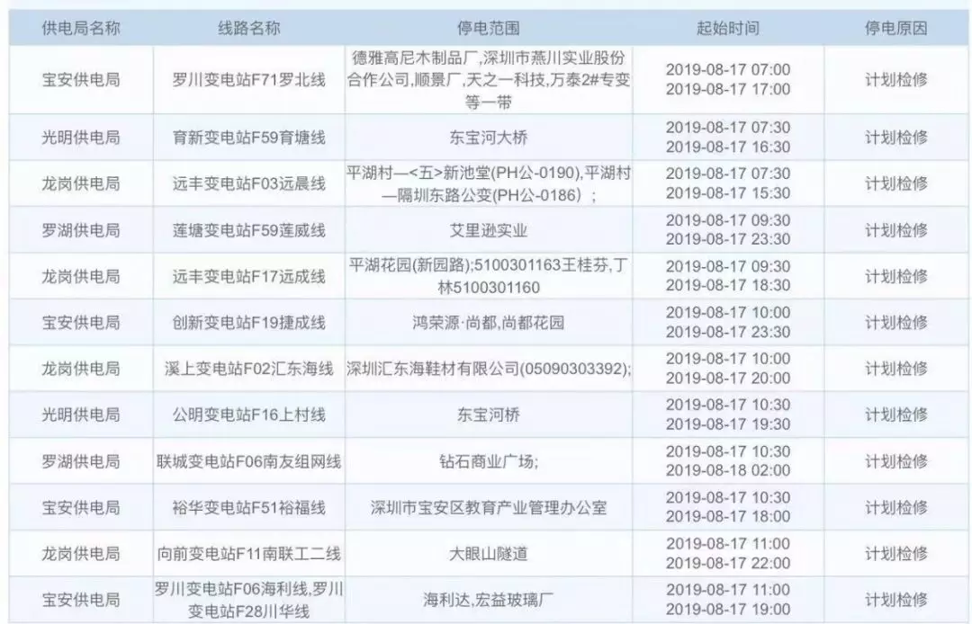 據(jù)中國南方電網(wǎng)信息,接下來這幾天深圳這些地方計劃停電,快看看有沒有你們家。