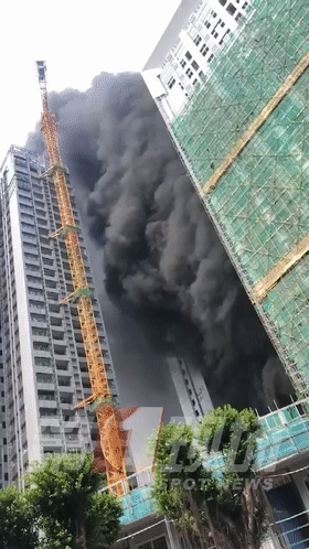 龍崗布吉一在建樓盤(pán)突發(fā)起火,躥起數(shù)十米高黑煙(圖)