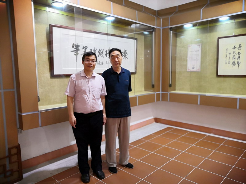 ▲ 深圳報業(yè)集團駐穗記者劉良龍和軍旅作家吳東峰(右)在開國將軍手跡展現(xiàn)場。