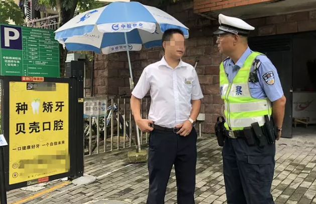 深圳交警到中航格瀾陽光花園停車場,進行隱患排查,與相關負責人進行對話,提出停車場尚存問題并提出整改。