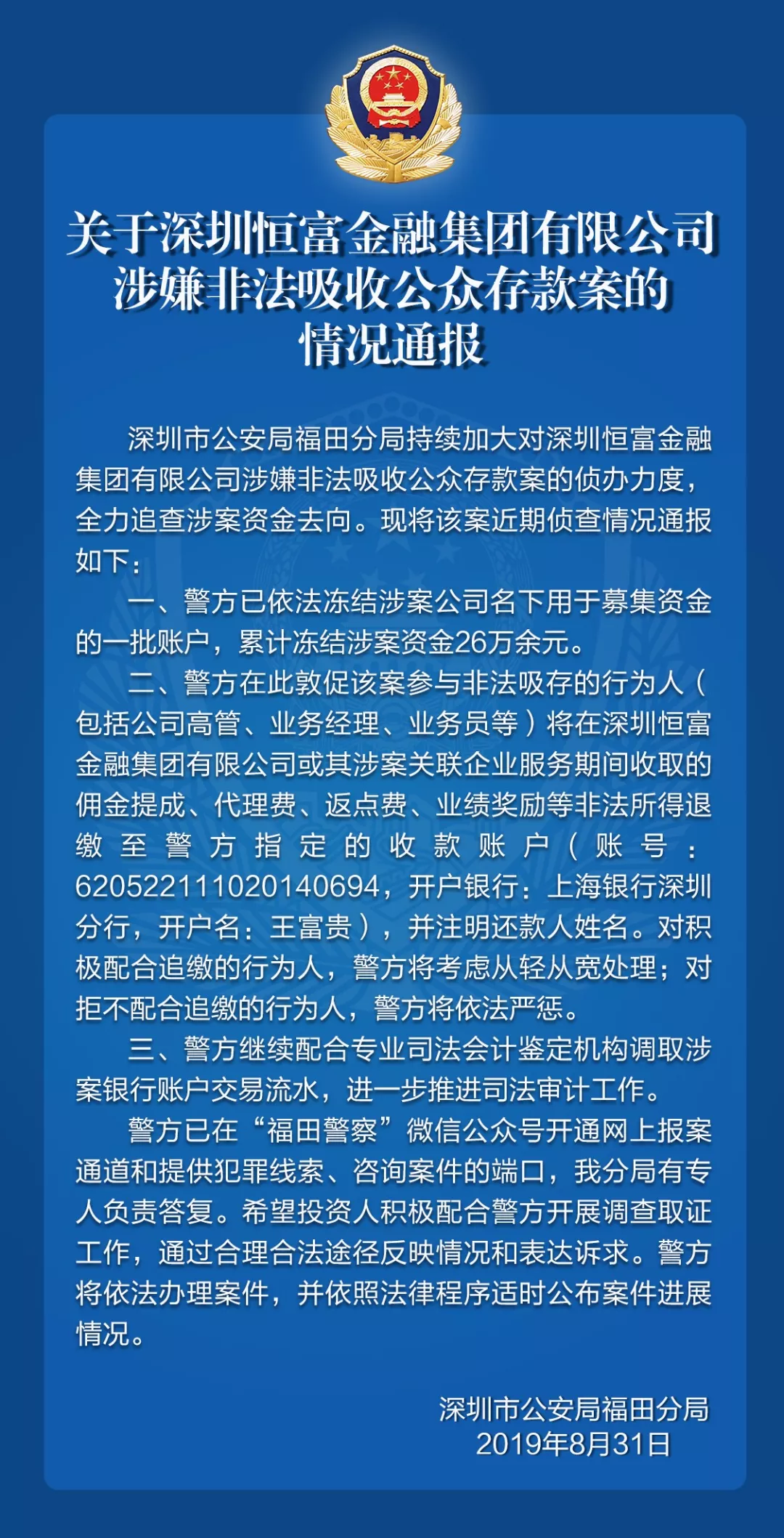 關(guān)于深圳恒富金融集團(tuán)、“小微金融”等平臺的案情通報(bào)