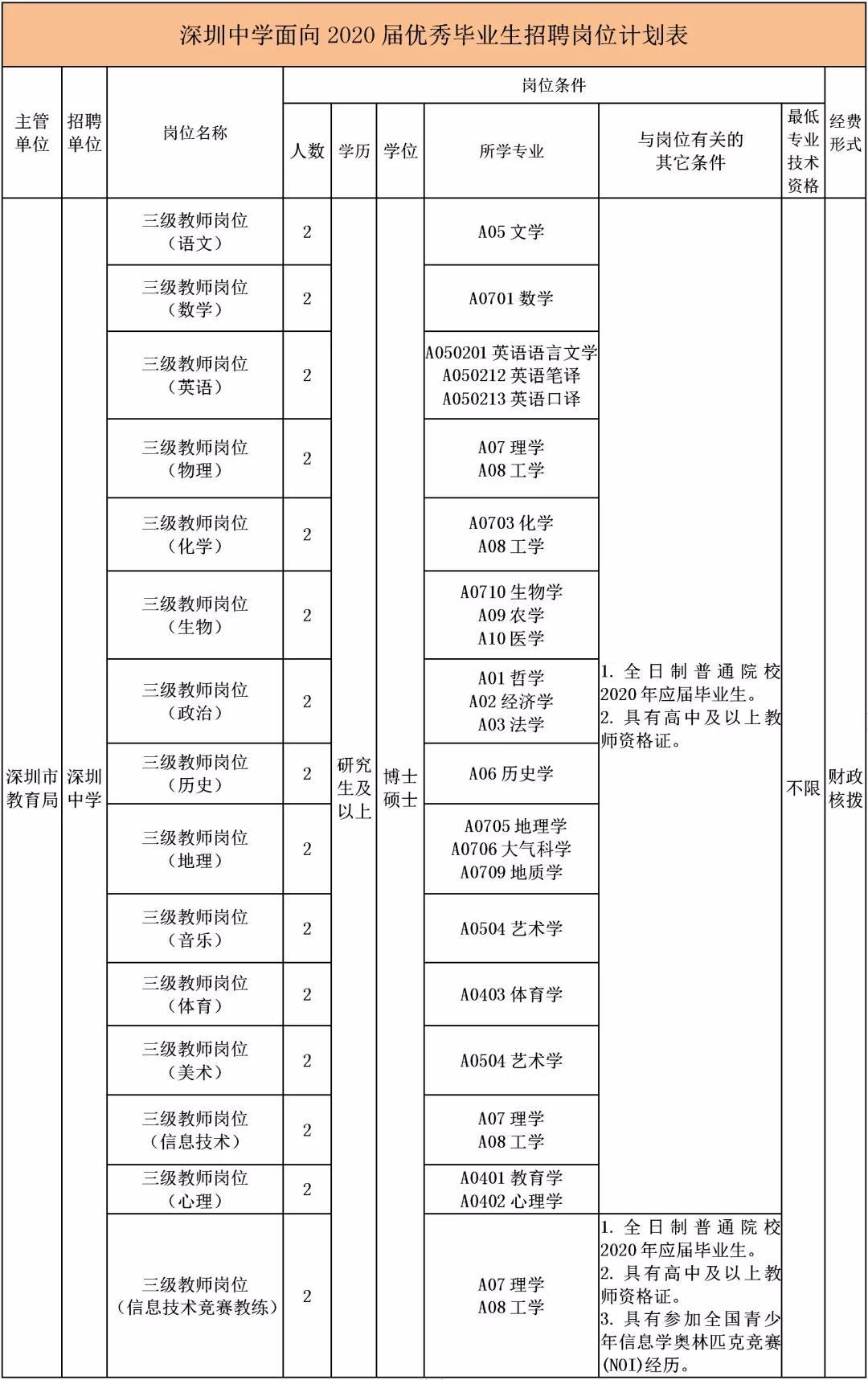 近日,深圳中學再發(fā)“英雄帖”,開啟2020屆高校畢業(yè)生招聘工作。此次共招聘30人,包括語文、數(shù)學、英語、物理、化學、生物、政治、歷史、地理、音樂、體育、美術、信息技術、心理學科教師,以及信息技術競賽教練。