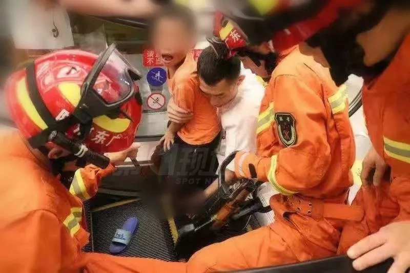 7月25日晚上,在南山區(qū)西麗留仙洞悅方廣場(chǎng)商場(chǎng)1樓東部手扶梯,有個(gè)小男孩的腳就被卡在了扶手電梯里,情況危急。