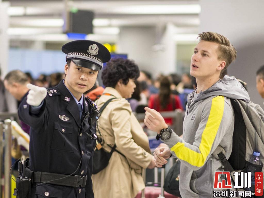 邊檢民警引導(dǎo)旅客快速通關(guān)。