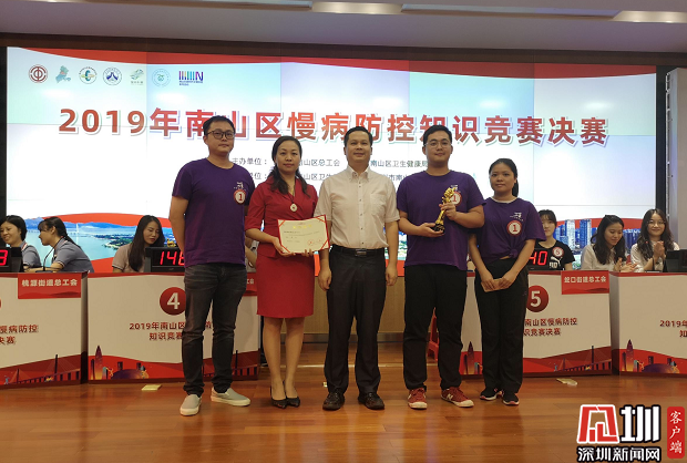 見圳客戶端·深圳新聞網(wǎng)2019年9月23日訊(見圳客戶端、深圳新聞網(wǎng)記者 劉夢婷 通訊員 張媞)日前,一場“非專業(yè)”健康知識競賽進(jìn)入決賽,參賽8支隊(duì)伍均來自非醫(yī)療衛(wèi)生專業(yè)人群。經(jīng)過激烈角逐,2019年南山區(qū)慢病防控知識競賽圓滿落幕,西麗街道總工會代表隊(duì)奪冠。