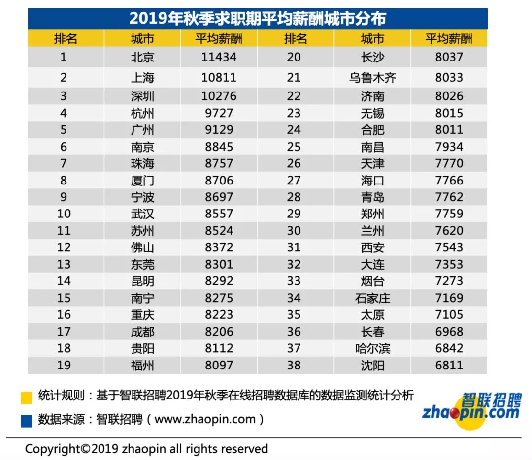 2019年秋季,全國38個(gè)主要城市