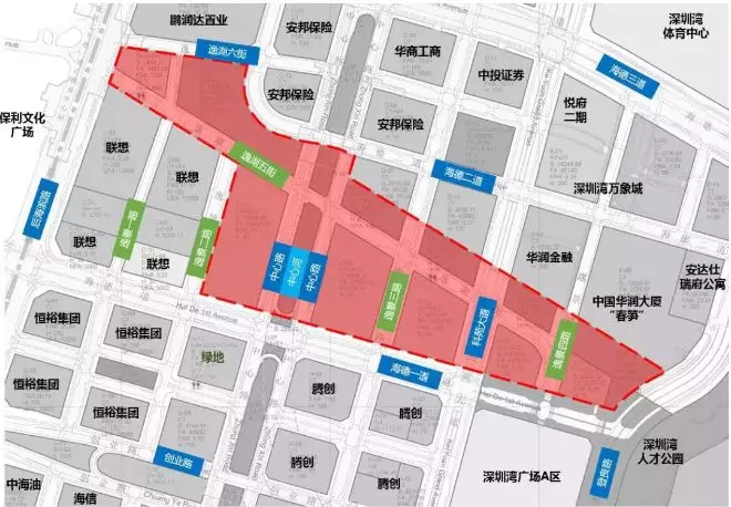 處于后海中心區(qū)“三橫一縱”中最重要的“一橫”,位于后海中心區(qū)核心文化設(shè)施帶,是以創(chuàng)業(yè)路為軸線、人才公園公共岸線為生態(tài)資源,展現(xiàn)后海片區(qū)重要形象的空間場所,是未來城市商業(yè)文化多元功能綜合發(fā)展的重要軸線。