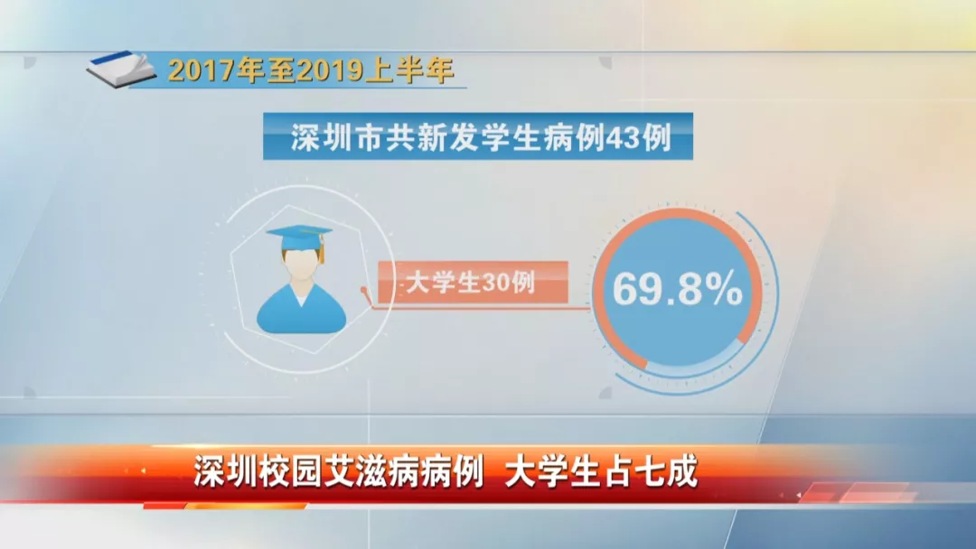 2017年至2019上半年,深圳市新發(fā)學生艾滋病病例,總共43例,其中大學生有30例,占69.8%。今年上半年,新發(fā)艾滋病學生病例8例。