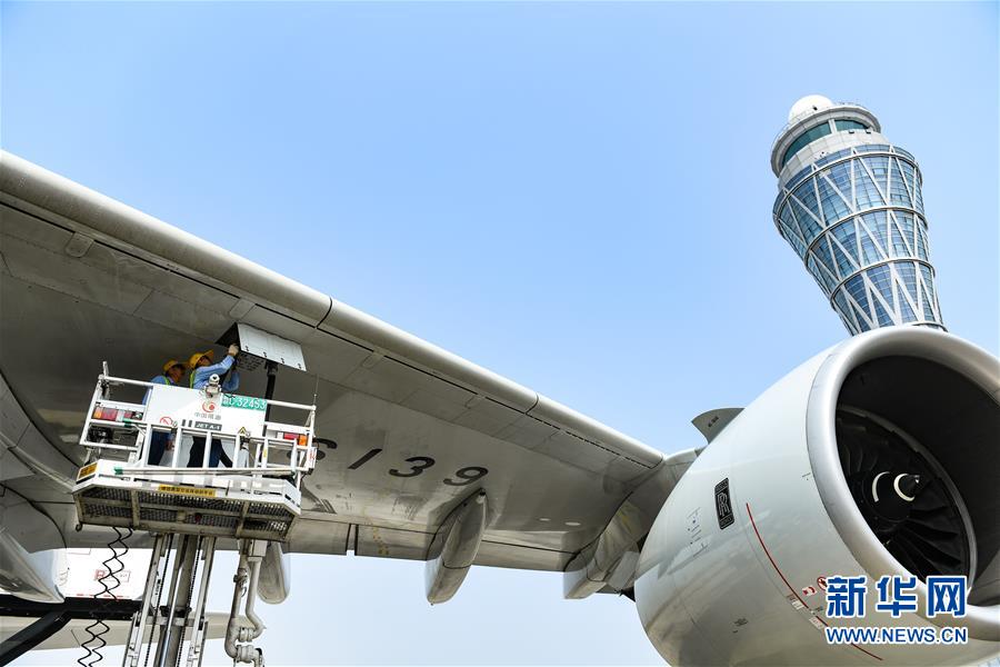 10月27日,工作人員在深圳機(jī)場為南方航空空中客車A380客機(jī)加油。當(dāng)日下午,由全球最大寬體客機(jī)——空中客車A380執(zhí)飛的南航CZ3153次航班由深圳起飛前往北京,標(biāo)志著這款“空中巨無霸”機(jī)型重返深圳機(jī)場。南航曾在2014年5月開始啟用A380執(zhí)飛京深航線,后因動態(tài)運(yùn)力調(diào)配停飛。新華社記者毛思倩攝