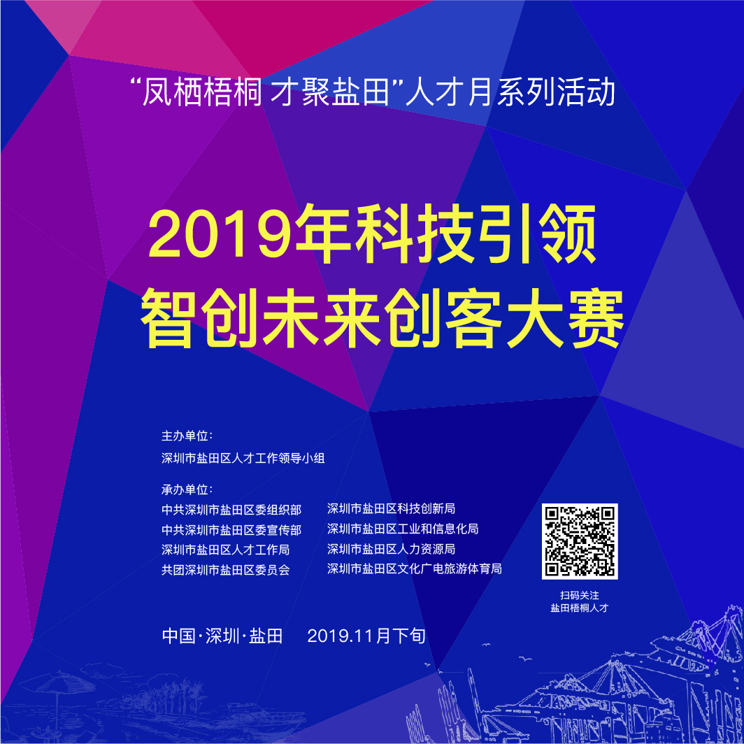 活動內容:舉辦創(chuàng)客大賽,廣泛邀請各地優(yōu)秀創(chuàng)新創(chuàng)業(yè)團隊或企業(yè)參加,積極營造創(chuàng)新創(chuàng)業(yè)氛圍,大力宣揚鹽田區(qū)營商環(huán)境、產業(yè)及人才政策。