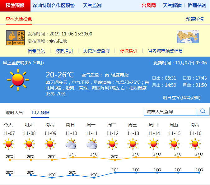 見(jiàn)圳客戶端·深圳新聞網(wǎng)2019年11月7日訊 空氣非常干燥,沿海及高地陣風(fēng)7級(jí)左右,氣溫20-26℃。未來(lái)幾天干燥加劇,請(qǐng)注意用火安全,戶外運(yùn)動(dòng)需及時(shí)補(bǔ)充水分。