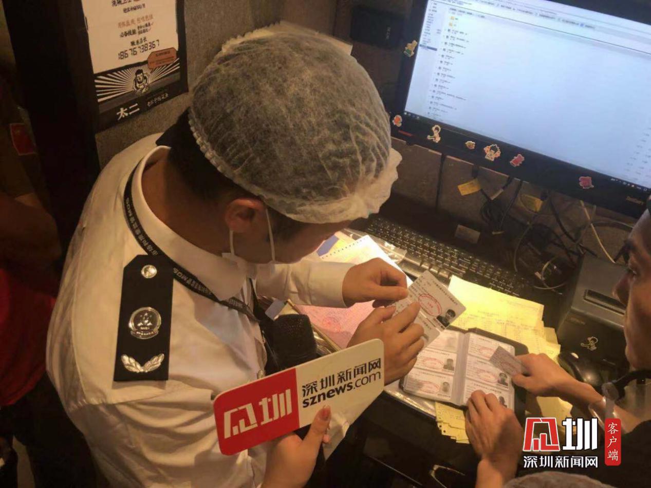 執(zhí)法人員現(xiàn)場檢查餐廳員工健康證