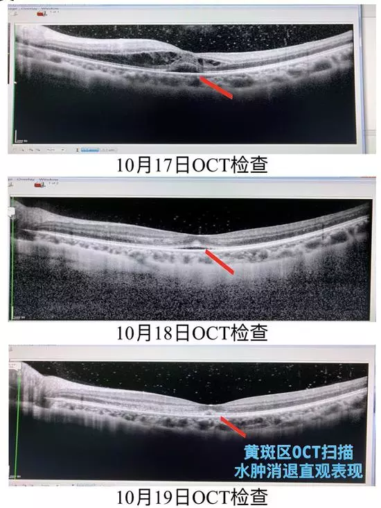 病房立即邀請眼科醫(yī)生會診,發(fā)現(xiàn)患者出現(xiàn)雙眼脈絡膜視網(wǎng)膜炎,左眼矯正視力僅剩0.3。經(jīng)過及時對癥治療,三天后,患者左眼視力由發(fā)病初的矯正視力0.3提高到矯正視力0.8,現(xiàn)視力還在進一步恢復中。
