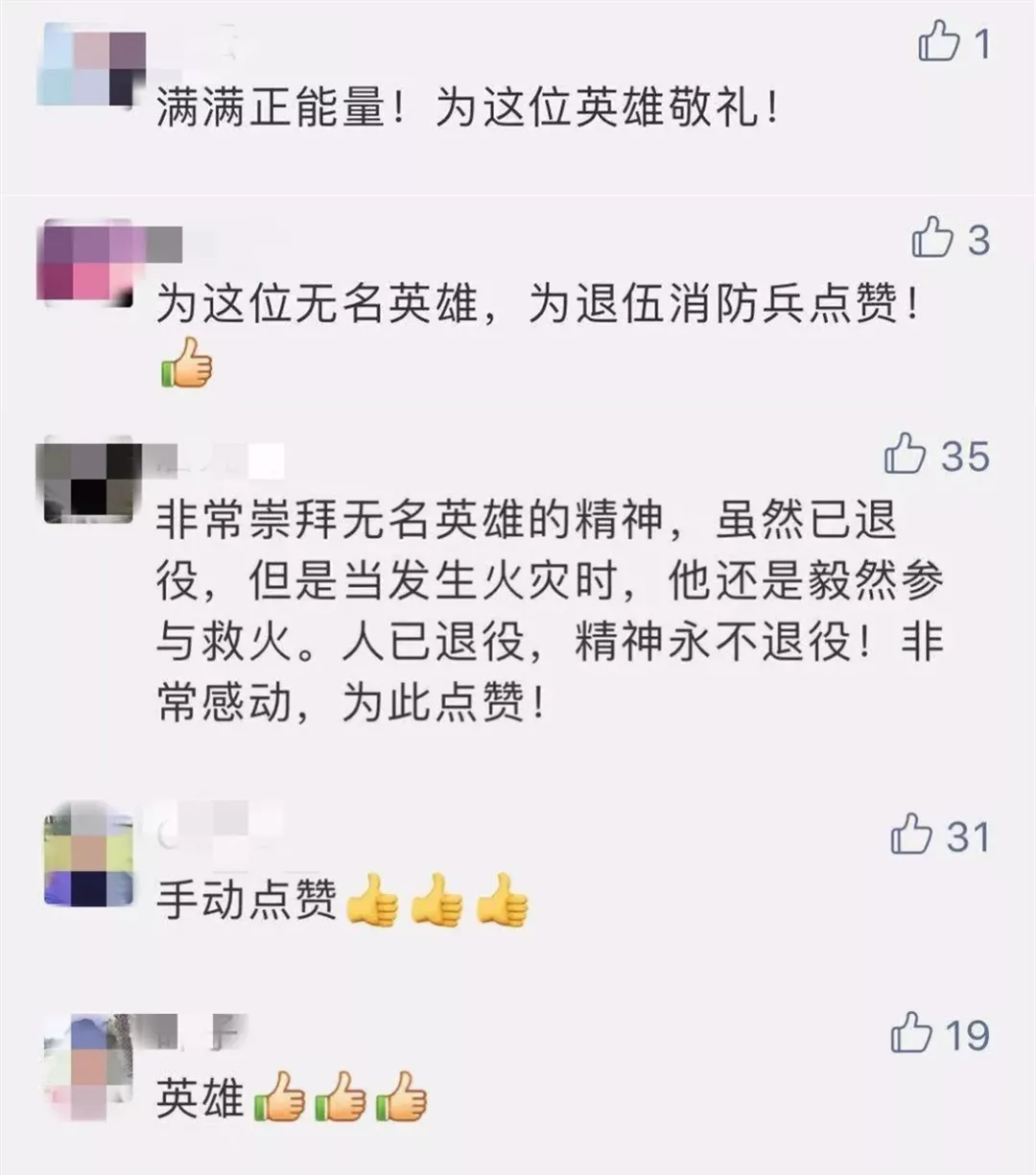 網(wǎng)友紛紛為這位救火的英雄手動(dòng)點(diǎn)贊: