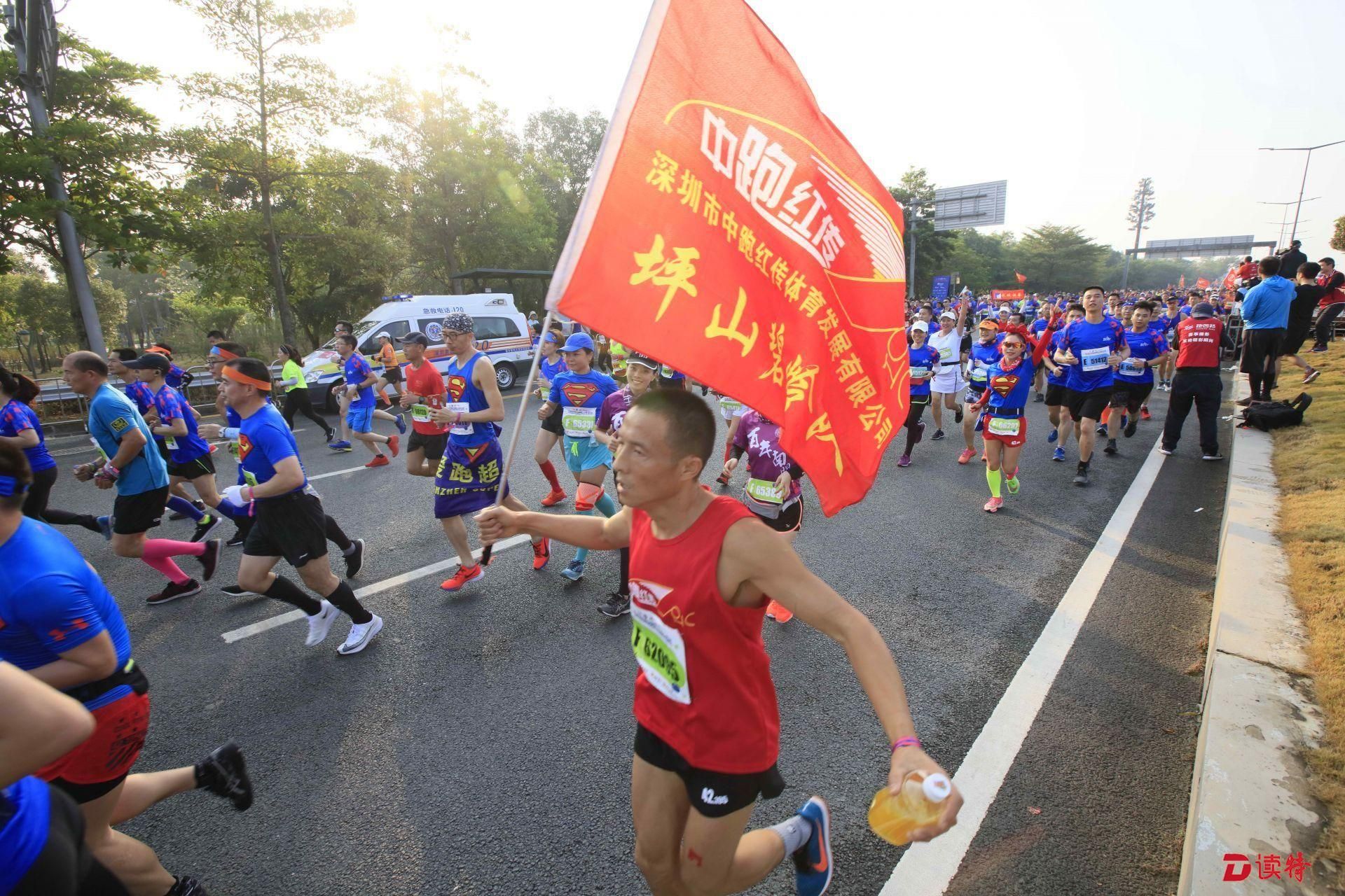8點鳴槍,1.6萬名參賽選手準時開跑,由深圳人才公園東門出發(fā),途徑南山區(qū)多個地標建筑,向終點華潤深圳灣體育中心奔跑。經(jīng)過一番激烈的角逐,9點過,有選手率先抵達終點,男女組冠亞季軍陸續(xù)誕生。
